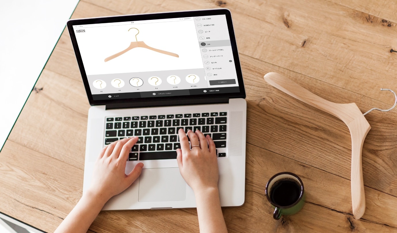 CUSTOM COPACK(サイト上)でご検討のハンガーデザインをシミュレーションいただき、概算御見積金額をご確認いただき、お申し込みいただきます。